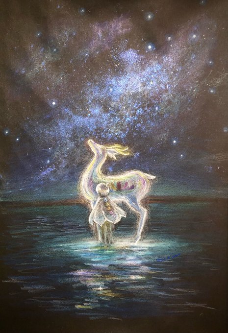 #GWアナログ絵祭り 黒い紙に色鉛筆などで光や空気を描くのが好きです