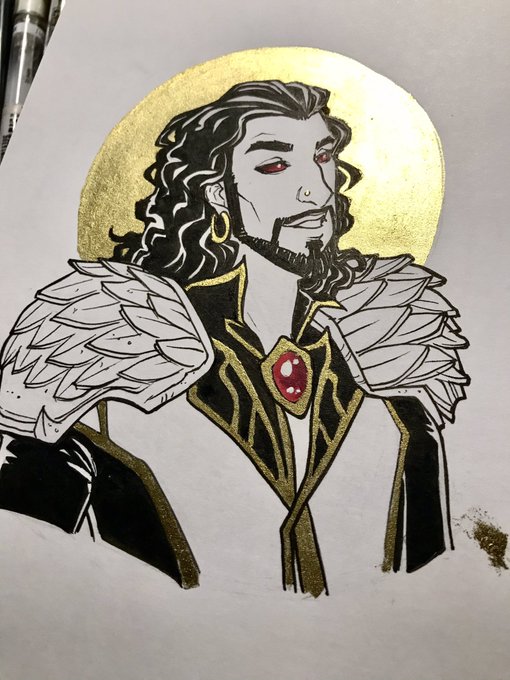 better pics later, but testing out my gold inks with some #wrathion, #gideontheninth, and a d&d npc :E