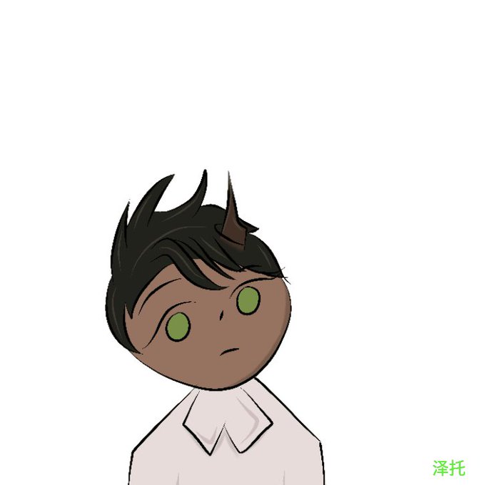 Young demon touching his growing horn coz he got curious, but it was too sharp he cut his finger-