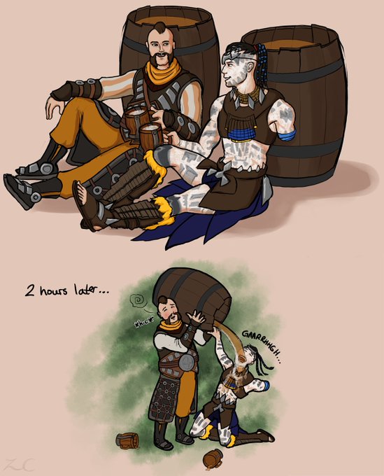 “... what about Kotallo?” “Ah, now there’s a man that can hold his liquor. Pretty sure we downed half a keg. We had a good chat. I think.”