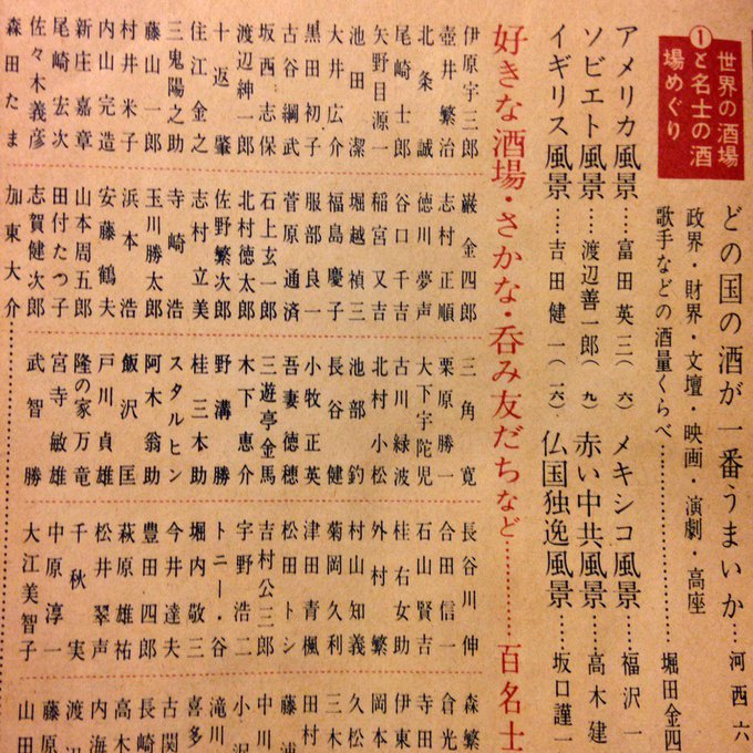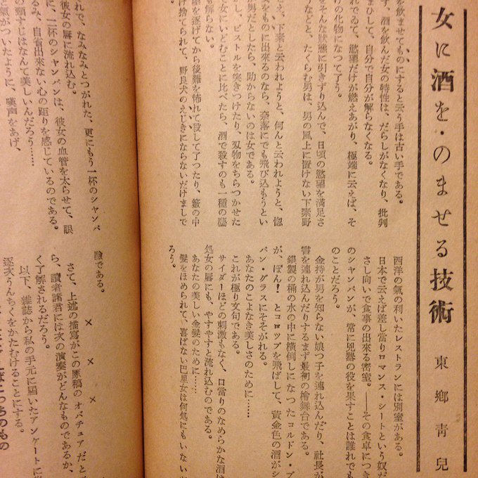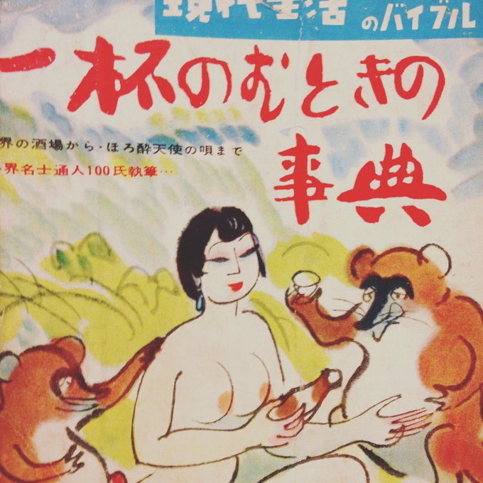 先日ほうろうさんで見つけた本が頗る面白い。森田たま、安藤鶴夫、古川緑波、佐野繁次郎らの酒に纏わるエトセトラ、シチュエーション毎のカクテルレシピ、東郷青児「女に酒を・のませる技術」、ヴェルレーヌの酒の詩も。表紙はこんななのに最高(笑)