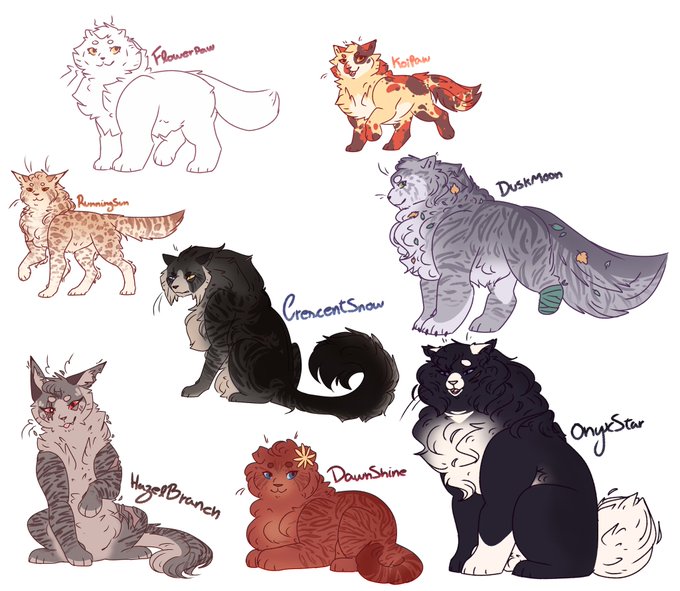 Some warrior cat Ocs that I made! I had a lot of fun doing them! My fav ones r Runningsun and Duskmoon uwu