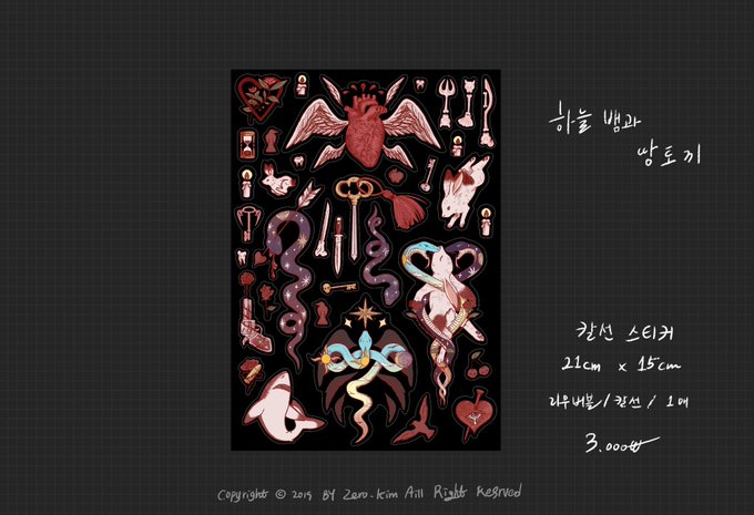 ☀️🐍🌖하늘 뱀과 땅토끼🐇 리무버블/칼선O/A5 특징: 마음에들어서 으쓱으쓱 하는 중입니다.