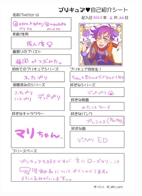 素材お借りしました!マリちゃん推しですが、デパプリは箱推しする予感…いいねRTともに巡回します! #プリキュア自己紹介シート #プリキュア好きさんと繋がりたい #マリちゃん