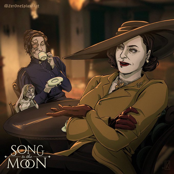 Happy 1st #ResidentEvilVillage anniversary! Here are all the artworks I did for @1ady_valentine's wonderful fan fiction "Song to the Moon" which has just been completed today. Read the whole story here: https://t.co/VnpSNeaHCB - Enjoy! ❤️