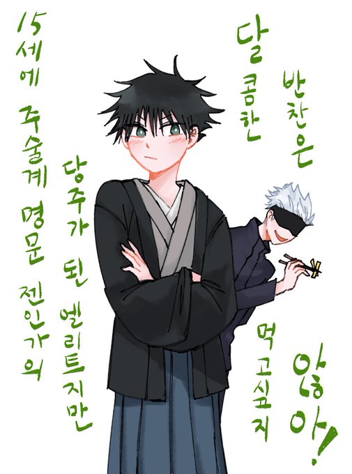 고죠 너무나 메구미 놀리는거 같음 메구미 표정 뚱한거까지 귀여움.. 뒤에 옥견도 너무x2 귀여움