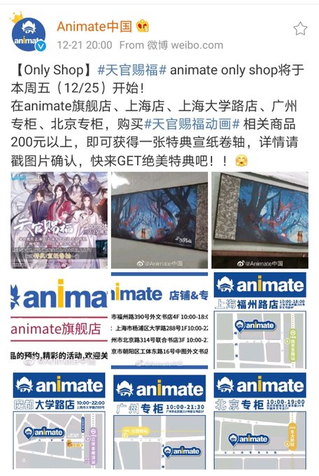 Start from 25th Dec, if you buy over 200 CNY of #TGCFdonghua merch from animate official taobao store or from their offline stores in Beijing, Shanghai and Guangzhou, you will get a Xuan paper scroll (limited edition) for bonus.