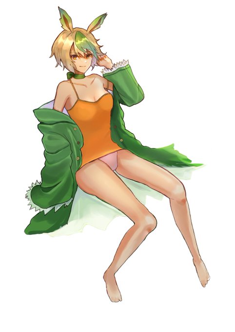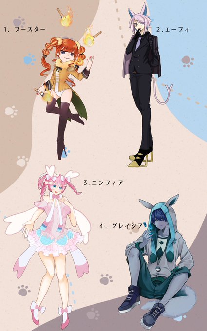 あべかわさん(@dareka_iruyo )主催のブイズ擬人化誰デザに参加しました!空模様のデザインしたブイズくんちゃんは誰でしょう!作画したのはリーフィアちゃんです!