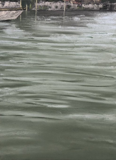 今日のパステル画。尾道の港の水面。