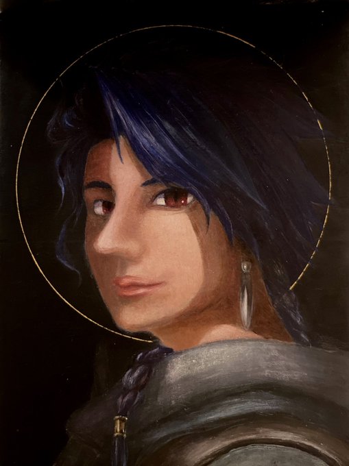また性懲りも無く推しをテンペラで描きましたわ〜〜〜〜 1枚目テカリを抑えようと影つけて撮ったらニンブスは薄れちゃったけど暗くていい感じになりましたわ