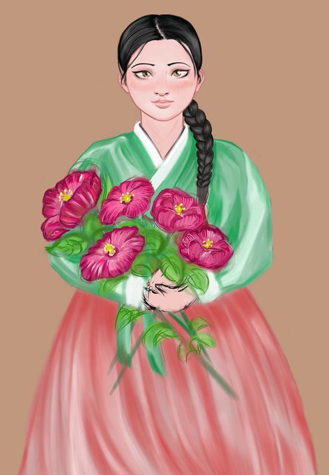 I have no idea when i will finish this draw. Nakyum's mommy with some hibiscus.😚🌺