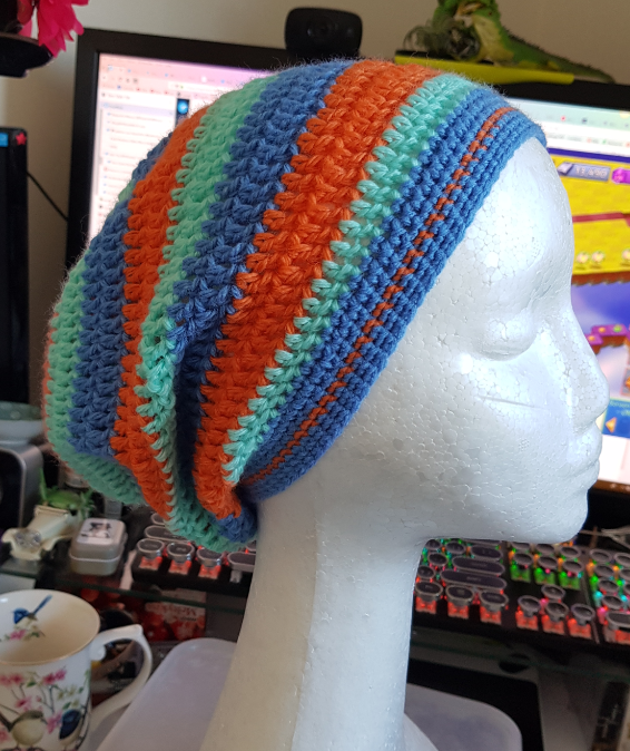 There was some yarn sitting on the hall stand, so I accidentally a hat. Then I made a little sea nubbin to match.