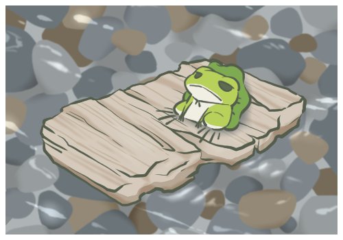 #旅かえる おお、板に乗ってるのは初めて見た。 そして相変わらず灯りは使ってくれないけんぺたん…。