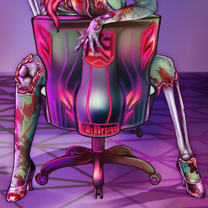 #gamergirl #zombie #gamechair #gaming #digitalart #Pink @Razer #headset #portrait #fantasy #gore #bone #skull #cute #GraphicDesign #magazinecover #conceptdesign #art #illustration #conceptart #Cover #magazine