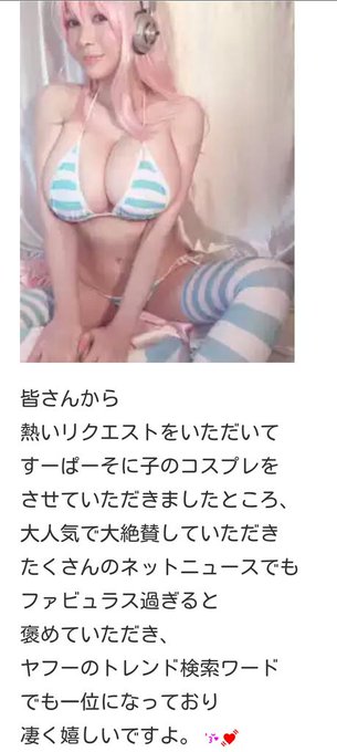 叶美香さんの「すーぱーそに子」コスプレ写真で私が驚いたのは、大胆なビキニ姿ではなく、いつものクッキリしたメイクをやめてキャラクターの方に寄せた、ごく淡いメイクに仕上げた事だった。
