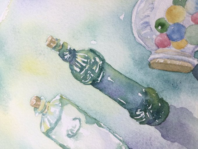 本日の静物 青緑の瓶が可愛く描けた!