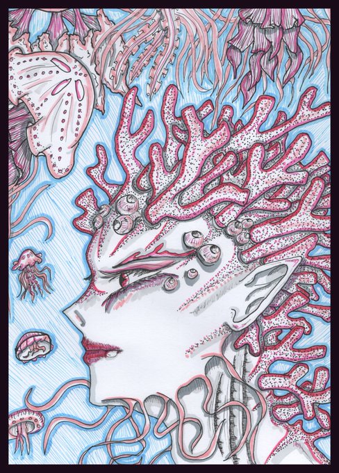 @ace_of_dragons Hiya I'm Zoe a traditional artist inspired by horror and manga. I draw bishounen, monsterboys, BL and pieces inspired by my writing.