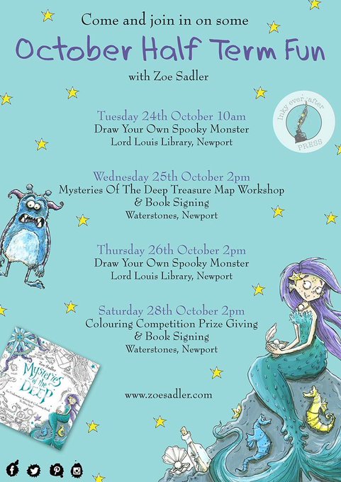 Fun workshops for all ages all next week. Come and join me for some monster madness and treasure maps! @LordLouisLib @wighterstones