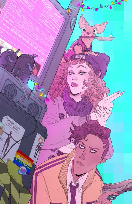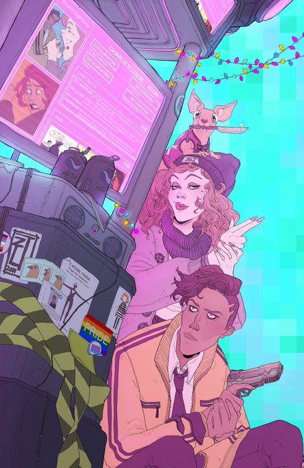 My first ever variant cover!!! For the excellent CROWDED(#11). I'm so ridiculously happy I got to do this. I also, awfully, included my own comics as ads so even if they don't exist in real life they canonically exist in CROWDED, I'm so sorry