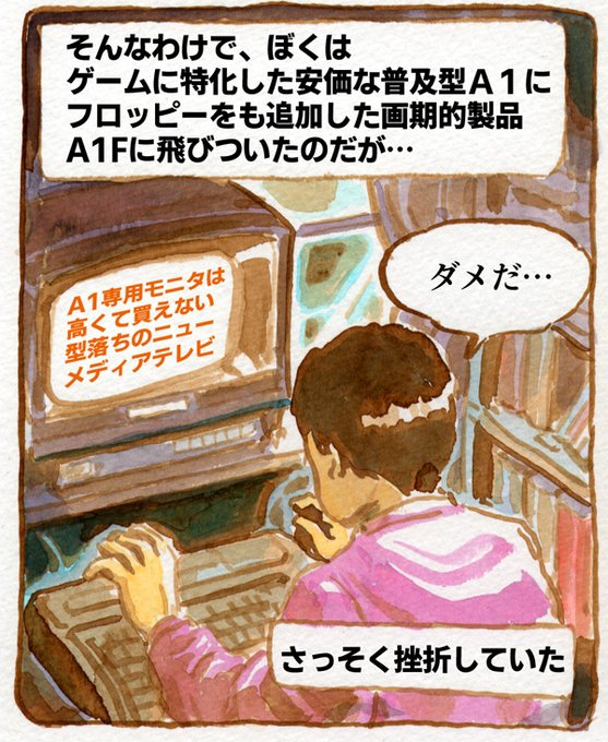 1コマしか描けなかったが、A1Fに接続していたのはα2000だったと思われる。ニューメディアテレビの名で売り出され、当時たしか5年落ちだったが、モノがよく、RGBで接続できてTVとしてもなかなかキレイに映った。