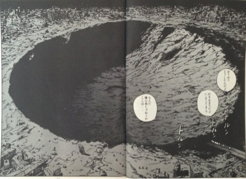 「クレーターのロマン」みたいなのがあったように思う。月面でお馴染みだったし、とりあえず描いておけばSFになるのだ。いつの間にか陳腐化した。多分スターウォーズがもっと面白い景色を一杯見せたからのように思う。その意味でAKIRAの爆心地はクレーターのロマンの最後を飾っているのではないか。