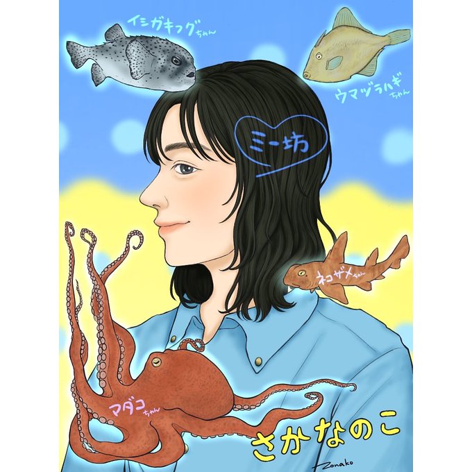 𓆝 𓆟 𓆜𓆞 𓆝 𓆟𓆜𓆞 〈ミー坊はお魚さんが大好き〉 𓆝𓆟 𓆜𓆞 𓆝𓆟 𓆜 𓆞 あたたかで、不思議なリアルさで、かわいくて、かっこいい映画でした。 もう一回観たいなぁ🐟🐙🐡 #さかなのこ #ファンアート