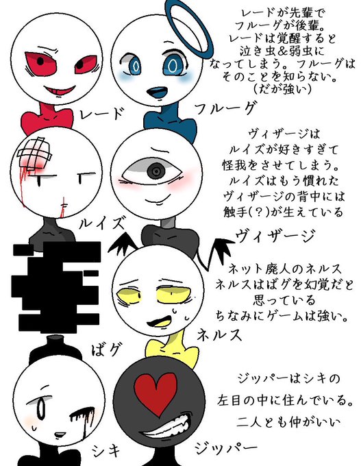 #トモ君のオリ棒キャラデザ #オリ棒 ちゃんと居るオリ棒達です!最後のイラストはレードとフルーグの覚醒(?)です。