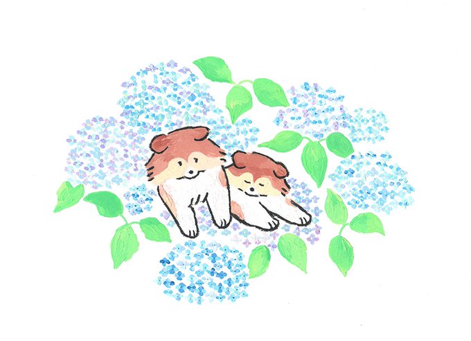 ずっこ(zucco.)のくっつきシェルティの子犬の兄弟(紫陽花)グラス