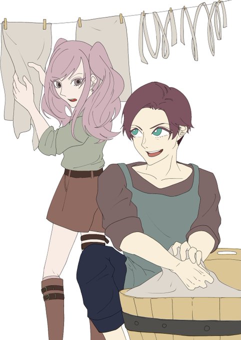 お洗濯〜👕👖☀✨ おじさんと若い娘ペアは可愛いな 癒しな感じするぜ!! 残念なのはデジタルで描くと私の技量的におじさんがおじさん感なくなっちゃうところ(´;ω;`)おじさん頑張って修行します!! お洗濯ならこと2人に任せ!!ってね #創作キャラ