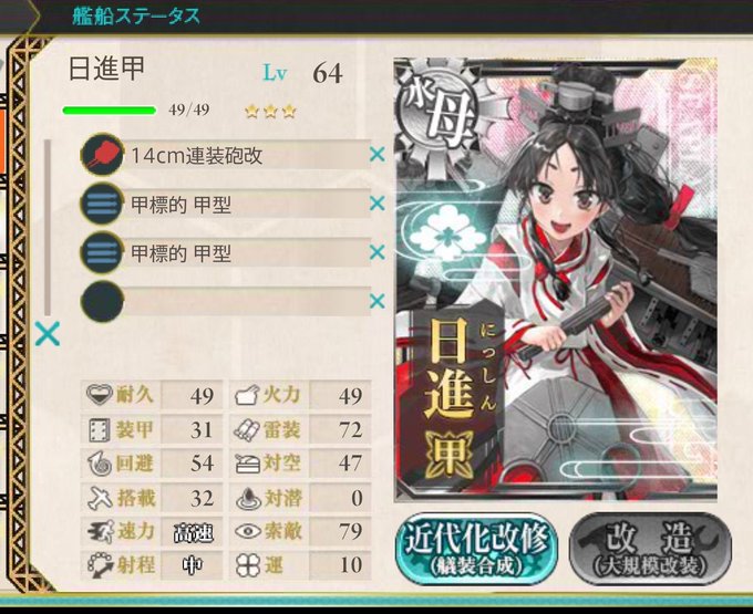 日進甲になった 14cm連装砲改もう一個欲しい……