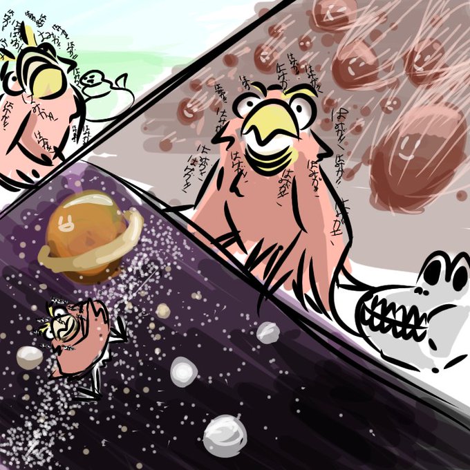 pienの逆襲途中経過&ご飯食べる鳥さん(過去絵)