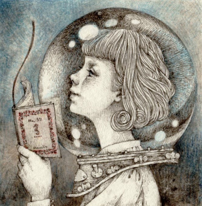 ありし日の夢や空想をふっと思い出せるような絵を目指して、ちょっとユーモアを込めたシーンをちまちま描いています。