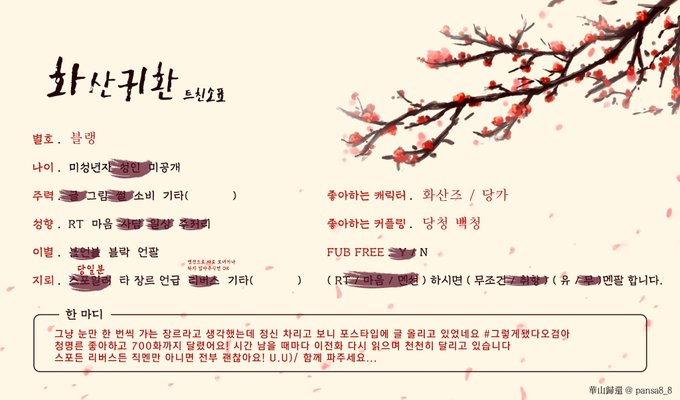 어쩌다보니 화산파의 귀신이 되었습니다... 포스타입에 썰과 글 쫌쫌따리 올리면서 덕질하다가 계정까지 만들었어요 이제 못빠져나감