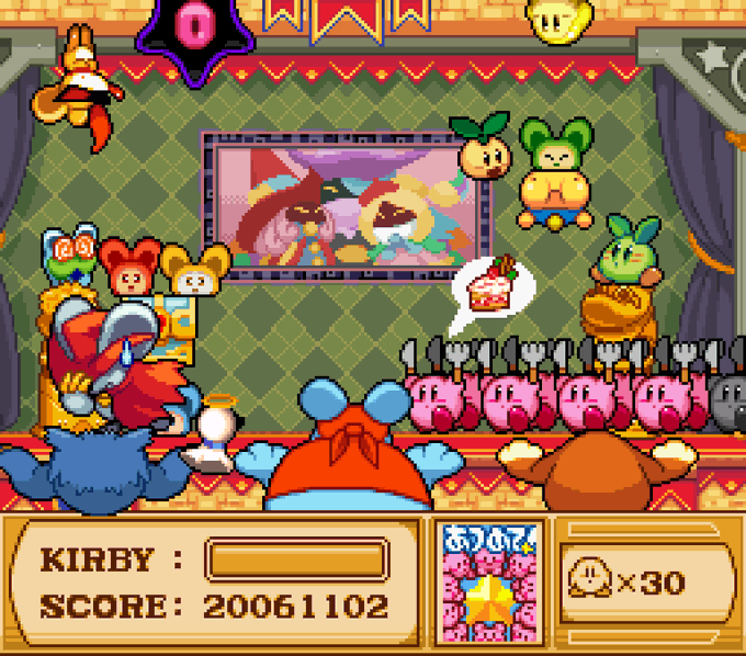 あとは動画内のHPとかコピー能力表示してるUIに過去に描いたドリームフレンズのアイコンを2Pとして表示して使おうと思ってたんだけどスコアの表示の関係で没になりました まぁスコアをゲームの発売日にしたのがしこたま好評だったので結果オーライです