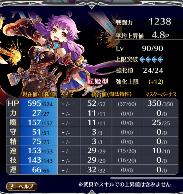 以前から なかなか思うように成長しなくて諦めてましたが、超極メタルガーデンのお陰で今回ようやくHP以外に★が並びました♪