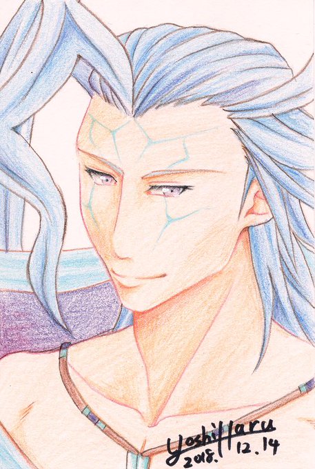 眼鏡ポニテセフィロスも完成したよ。ラフの段階でポニテが収まらなくて清書前に縮小コピーしたけどやっぱり収まらなかった。服の色は普段ほとんど使わない色鉛筆を使っただけの話。