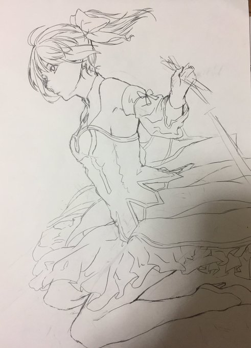 途中まで描いた 顔がなんか変かもしれないけど 明日にまわす