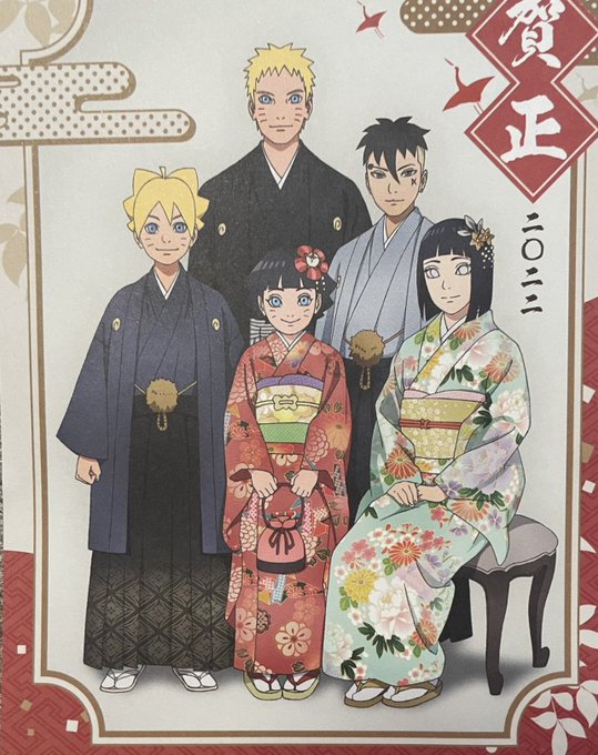 Cartões postais de Ano Novo das famílias principais de Boruto