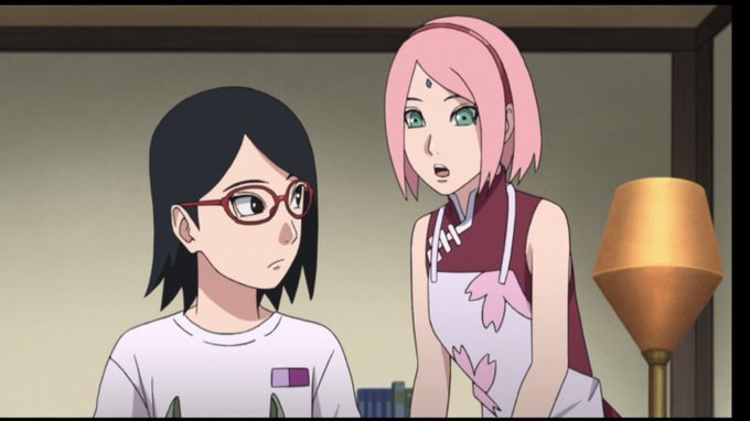 Mãe e Filha 💝 | Sakura se mostrou bastante entusiasmada e orgulhosa de sua filha ter virado Chūnin. Mesmo com Sarada afirmando que irá fazer as mesmas coisas, a Uchiha mostrou algumas vantagens e orgulho de carregar este título!
