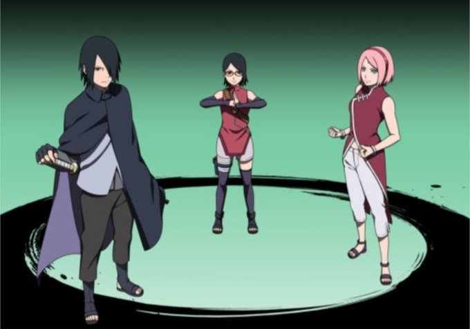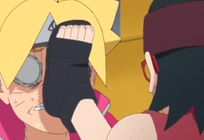 Sarada despertou o Sharingan através de um trauma familiar e despertou o segundo tomoe protegendo Boruto.