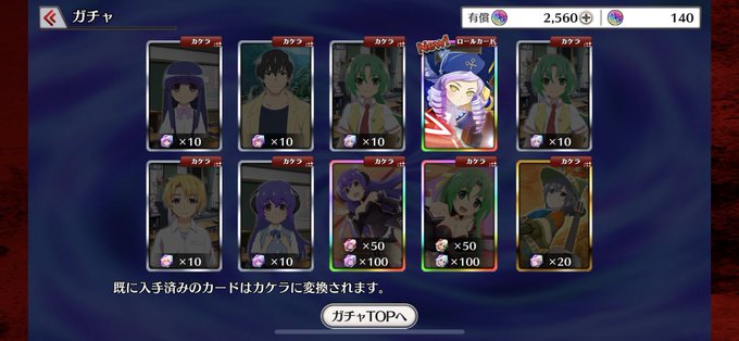 仕事が落ち着いたら読もうと思って今やっとシナリオを読み終えました。手を止め次の会話が出る前に私から赤を刺すも砕かれて本当に楽しかった!寝る前に半額回したらSSR3枚抜き…!あとはエリカだけですわ!竜騎士さん本当にありがとうございます。おやすみなさい。