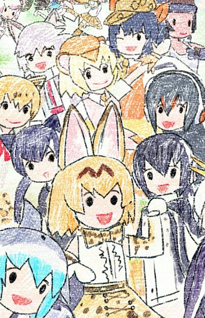 勝手に画像引っ張ってきてごめんやけど、こんなに色数の多いクレヨン持ってるのにフレンズの目が全員黒なのは日本人の感性って感じで面白いよね