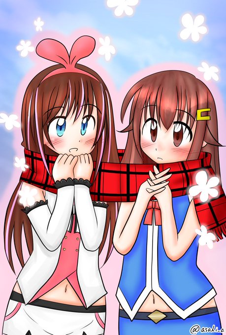 冬になると女の子の(アイちゃんが女の子なのかどうかっていうアレはありますが)二人マフラーを描きたくなる病です。 #soraArt #KizunaAI