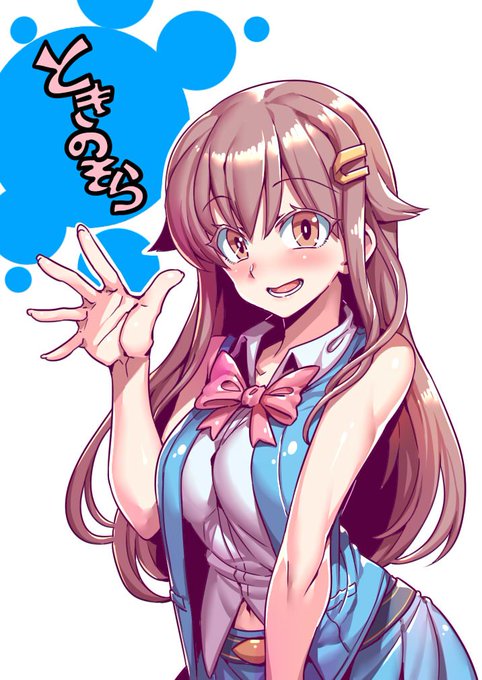8頭身苦手だけど、肩出した服着て欲しかったから描いてみた(●´ω`●) 服のデザインダサくても許して…センス悪いんよ(´・ω・`) ポーズはいつも通りザシュッのポーズ(*≧ω≦) #soraArt #ときのそら