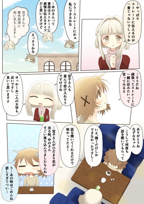 『ひだまりスケッチ』9巻〜10巻の間に髪のハイライトの描き方が変わったのは周知の事実だと思うのですが、ポップアップストアの絵はうめ先生最新の描き方になってますね☺️
