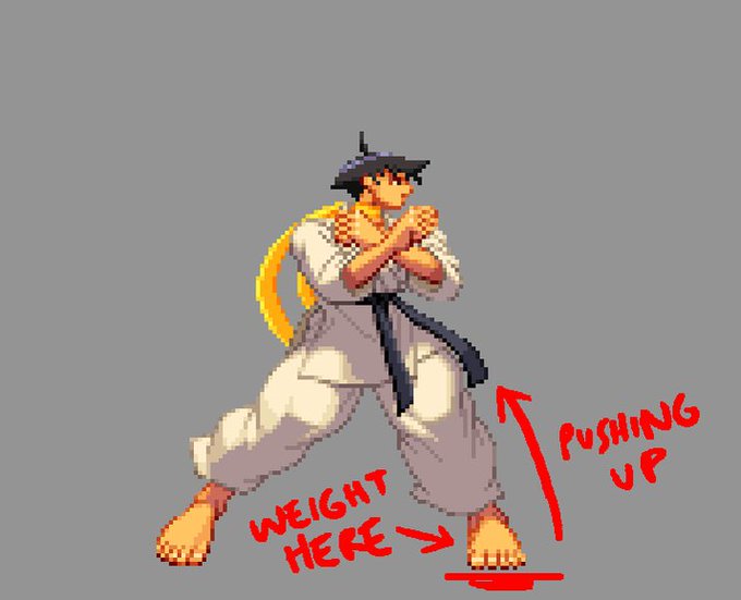 Here's just 4 frames isolated and slowed down. Look at how beautiful every single part of this sprite is from frame to frame. Look at how SOLID her body feels underneath her FLOWING (yet HEAVY) gi!