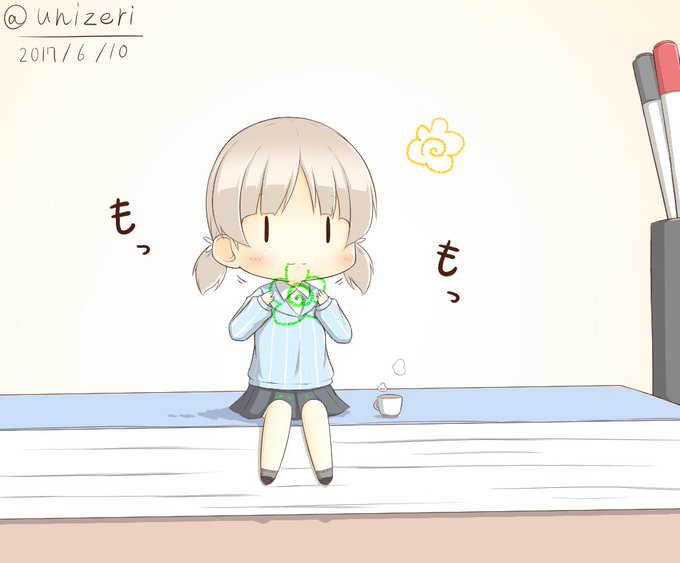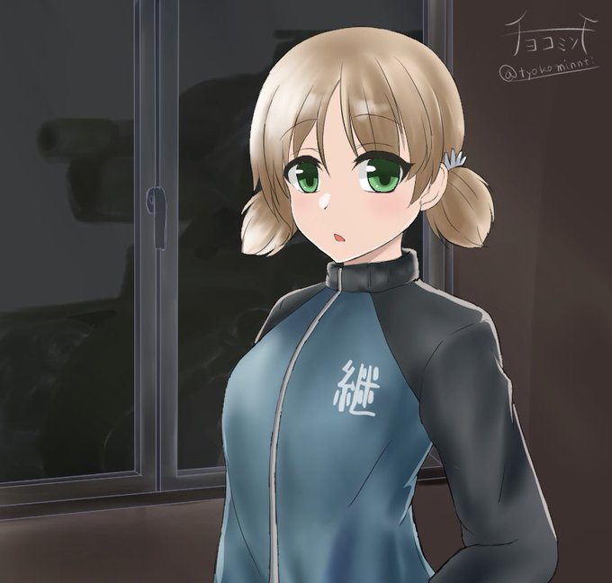 #ガルパン版深夜のお絵描き60分一本勝負 #ガルパン版深夜のお絵描き60分一本勝負_20170610 お題「アキ」ミッコに引き続き妄想体操服アキさん。水分補給は重要ですネ。