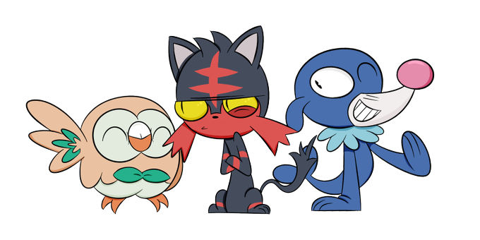 So the new starters for sun and moon were announced, had to do something colourful!