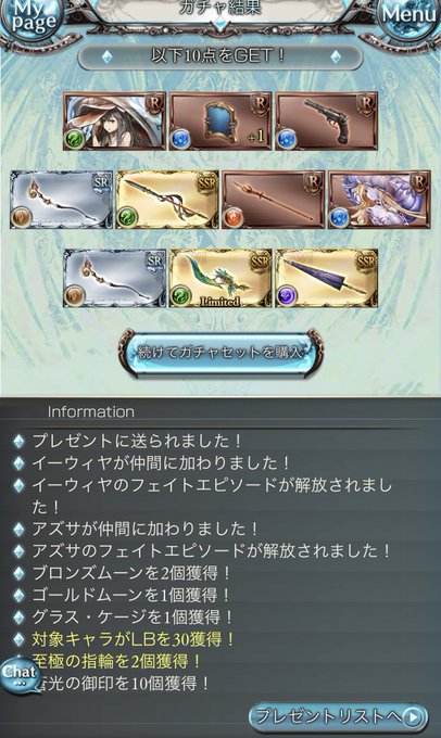 グラブル9周年おめでとうガチャは今日ゲージMAXでガチャピンムックモード水着アズサちゃん、昨日はリミイーウィヤちゃんでしたありがとー!