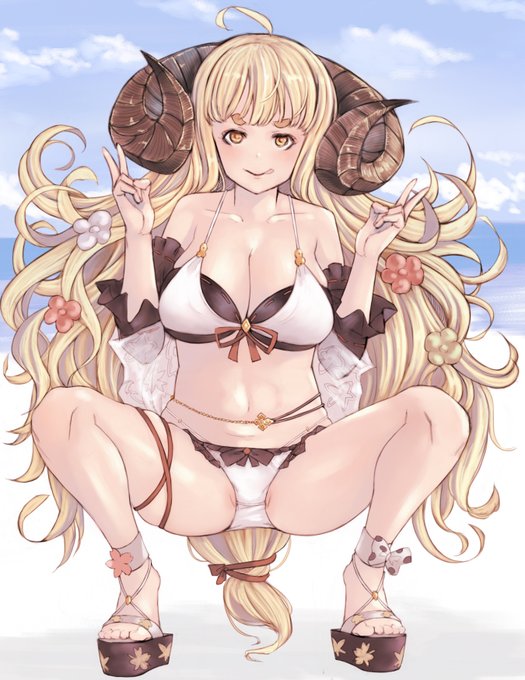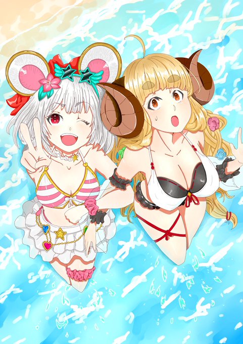 水着アニラ🐏と水着クビラ🐗(夏終わっちゃったけど…) #グラブル